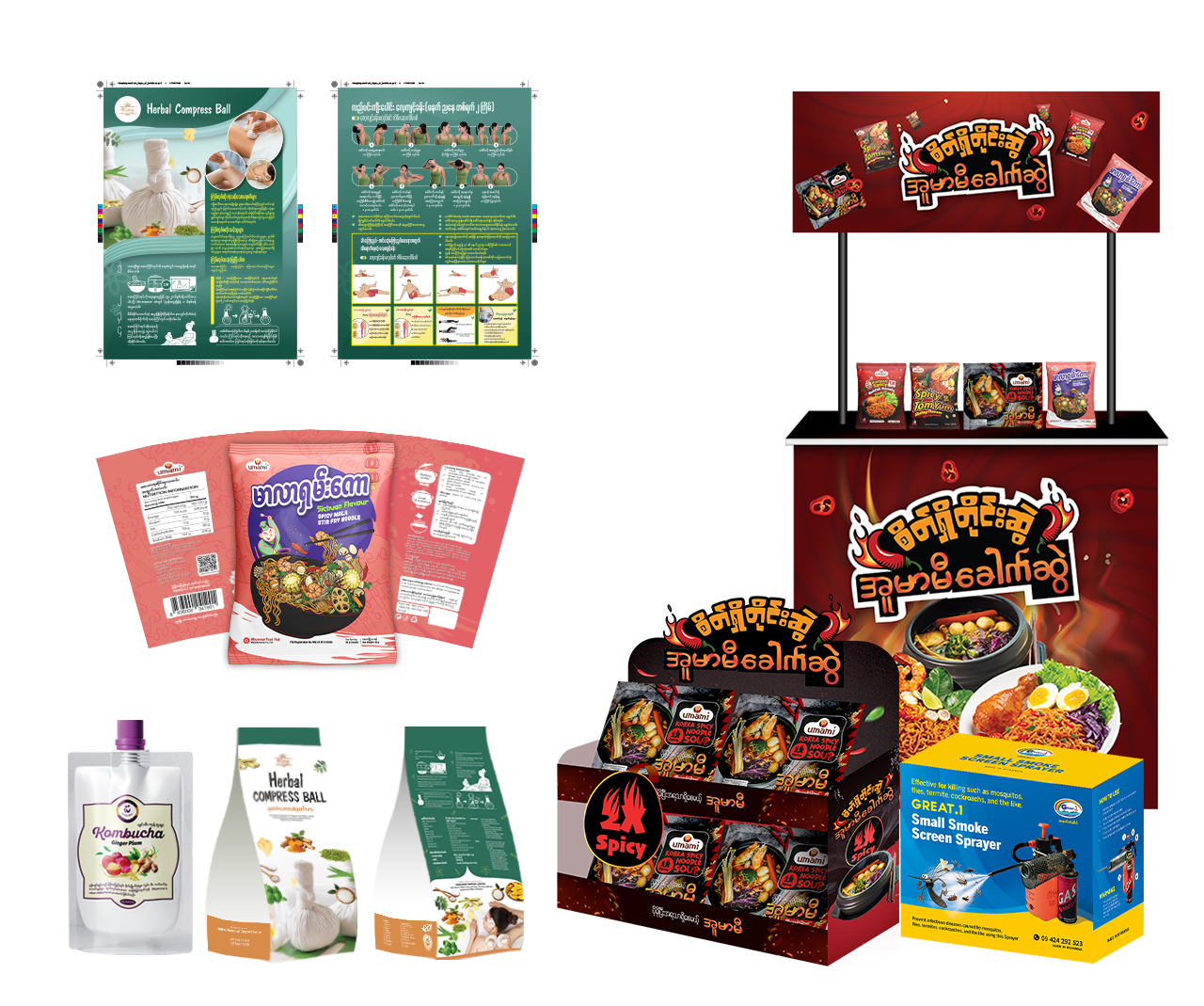 Branding, Visual Identity နှင့် ဈေးကွက်ဝင် ကြော်ငြာဒီဇိုင်းများကို ဆွဲဆောင်မှုရှိအောင် ဖန်တီးပေးပါသည်။